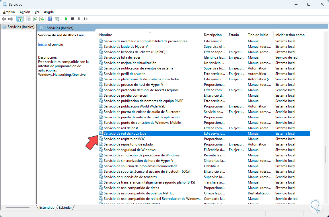 Este servicio se encarga de ofrecer los servicios de autenticación y autorización que permiten a las aplicaciones interactuar con Xbox Live. Después de esto, ubicamos el servicio llamado “Servicio de red de Xbox Live”: