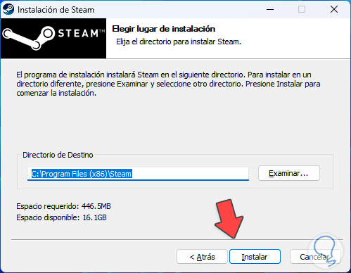 Una vez definido esto damos clic en “Instalar”, se dará paso a la instalación de Steam: