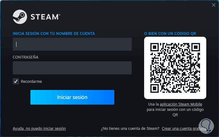 Cuando este proceso llegue a su final, se abrirá la consola de Steam. Aquí podemos ingresar, si tenemos, el usuario y contraseña, si no es así, damos clic en “Crear una cuenta gratuita” y seguir los pasos del asistente.