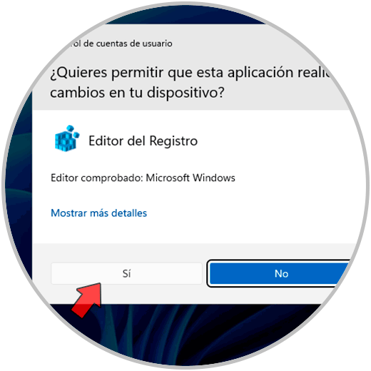Damos clic en “Editor de registros” y debemos dar clic en “Si” para acceder: