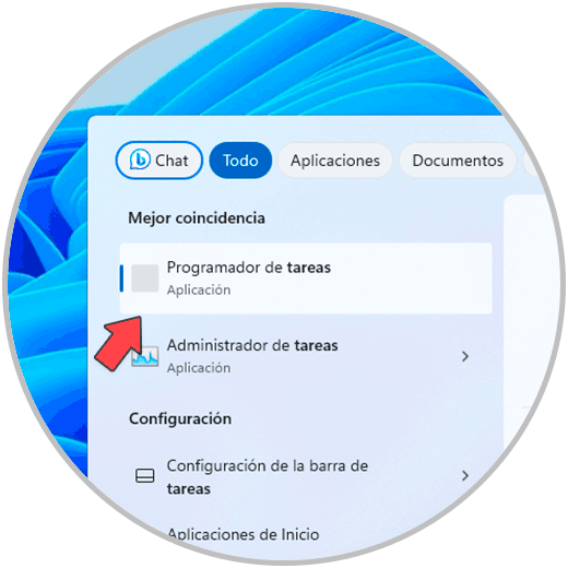 Ahora vamos a acceder a esta función de Windows para revisar el estado de los reinicios automáticos, en el cuadro de búsqueda ingresamos “tareas” y damos clic en “Programador de tareas”: