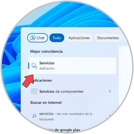 Después, en el cuadro de búsqueda ingresamos “servicios”: