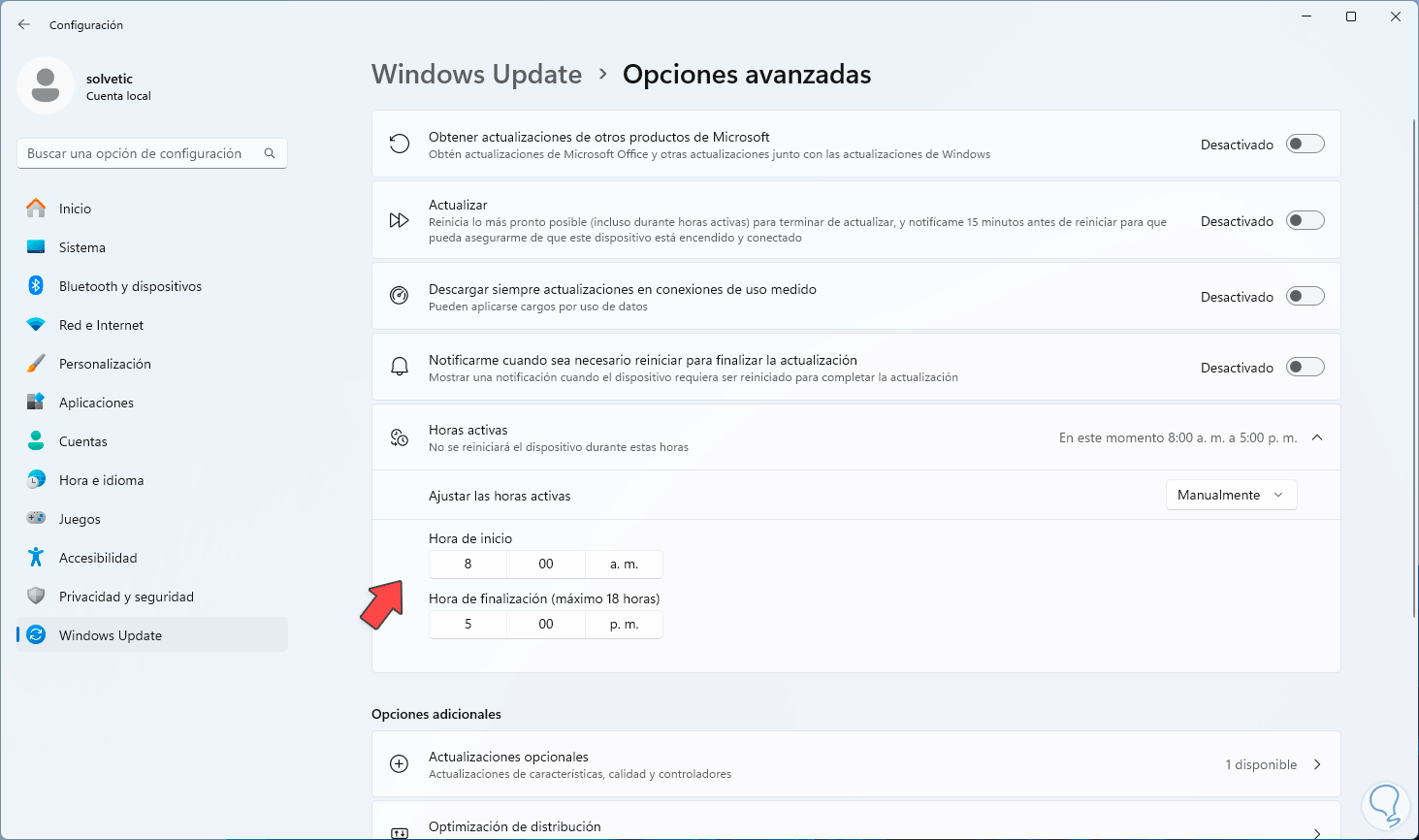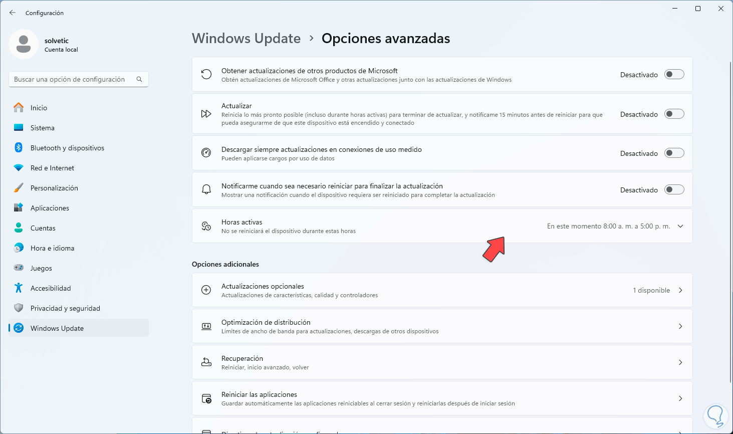 Allí será posible definir en que rango de tiempo se pueden instalar las actualizaciones.