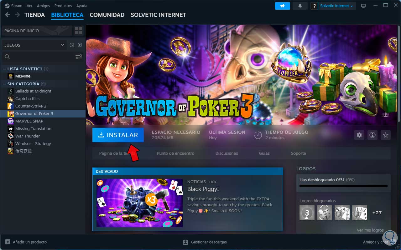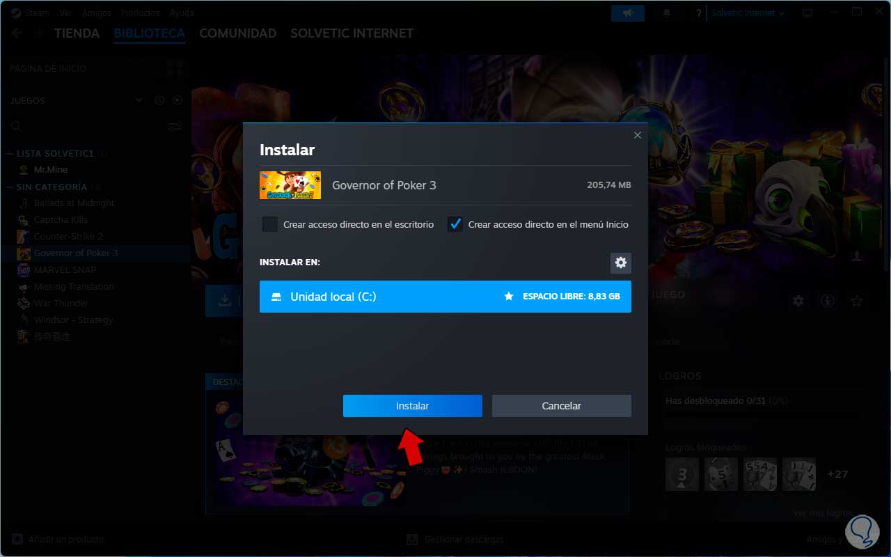 Damos clic en “Instalar” para iniciar el proceso en Steam: