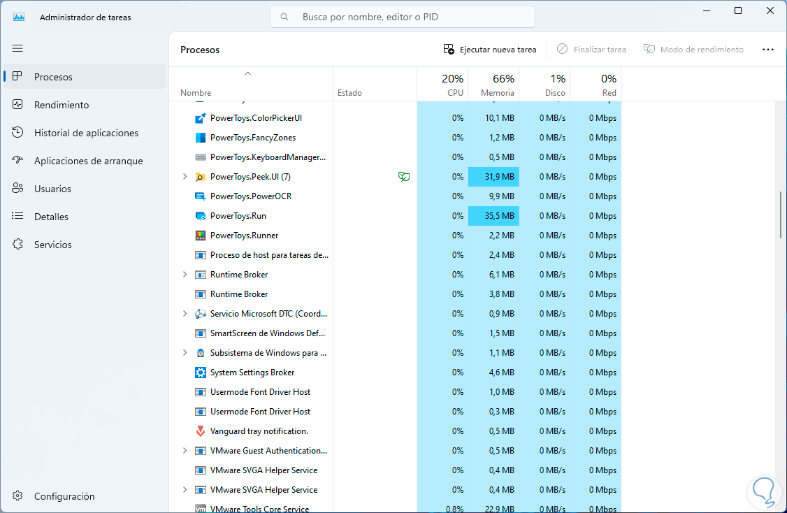 Para trabajar en el primero abrimos el Administrador de tareas desde Inicio: