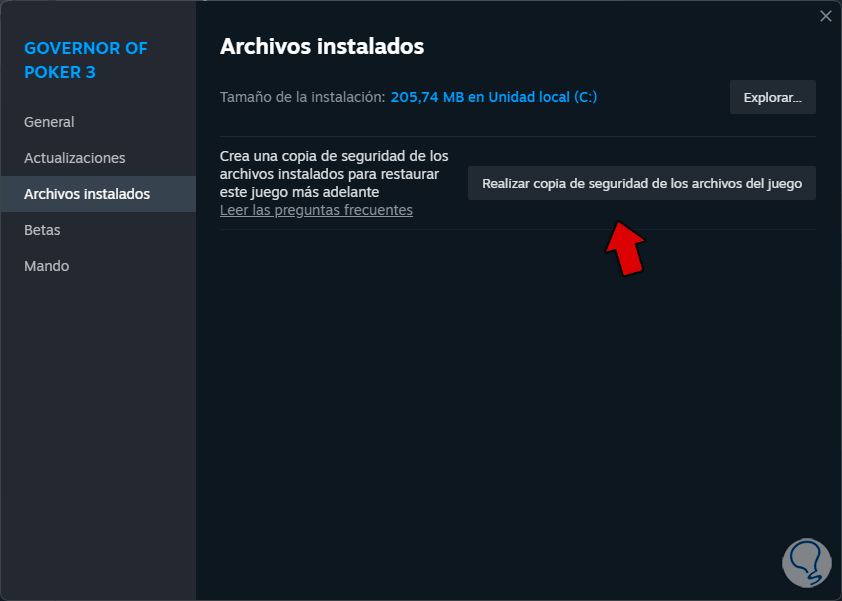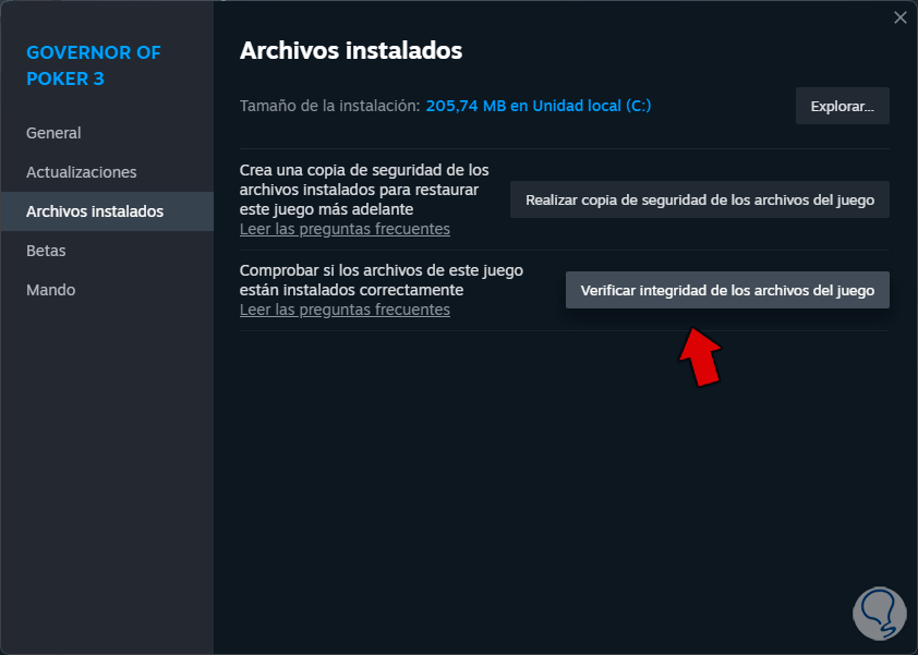 Después, en “Archivos instalados”, damos clic en “Verificar la integridad de los archivos del juego”: