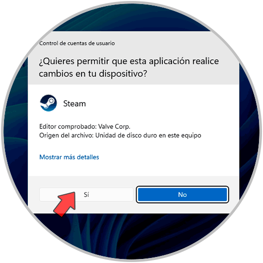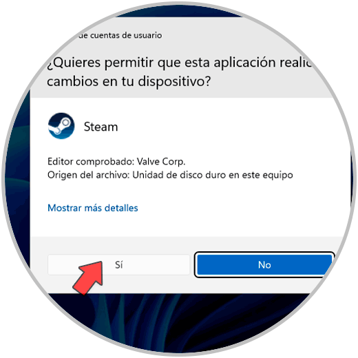 Se desplegara el mensaje de UAC: