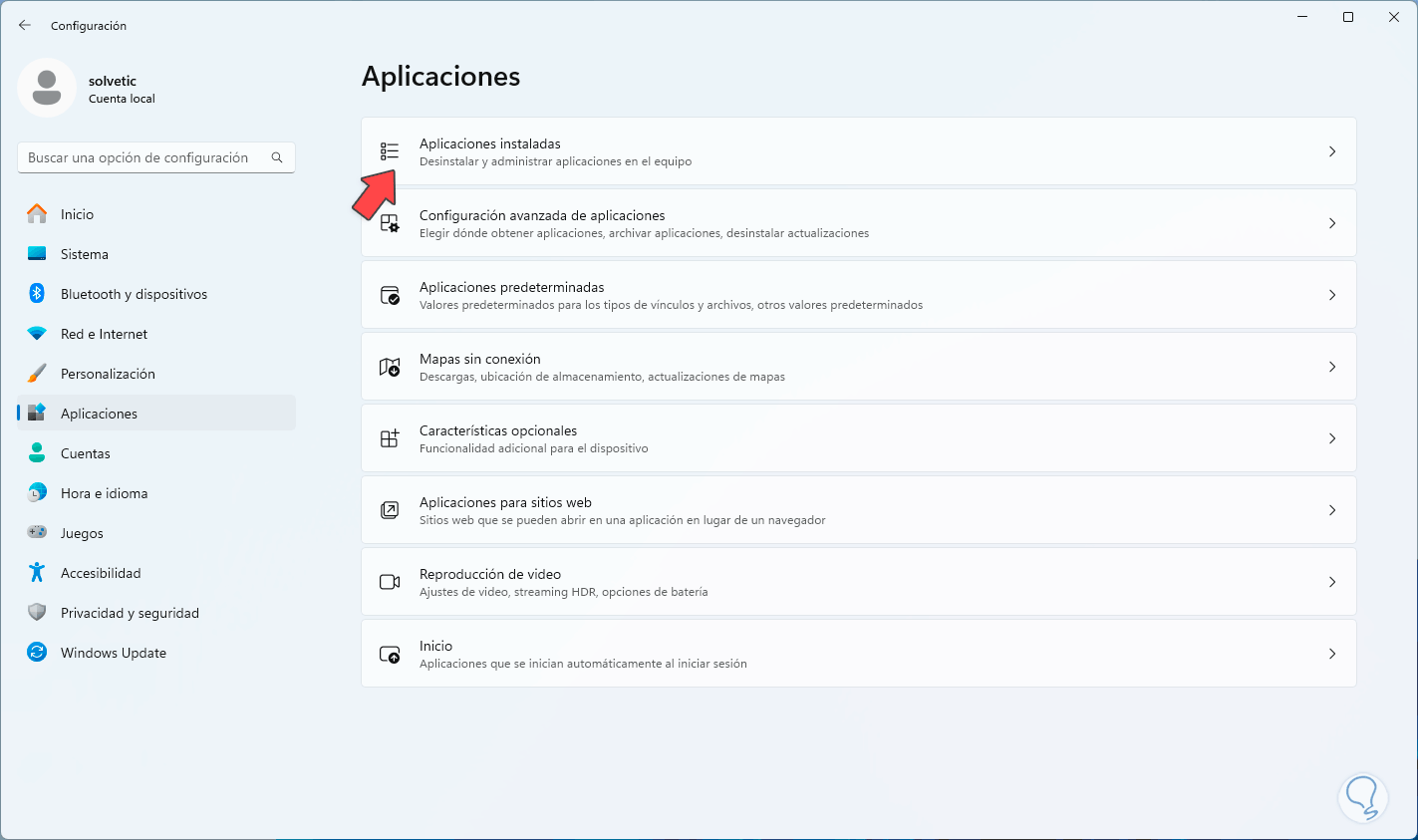 Vamos a “Inicio – Configuración – Aplicaciones”:
