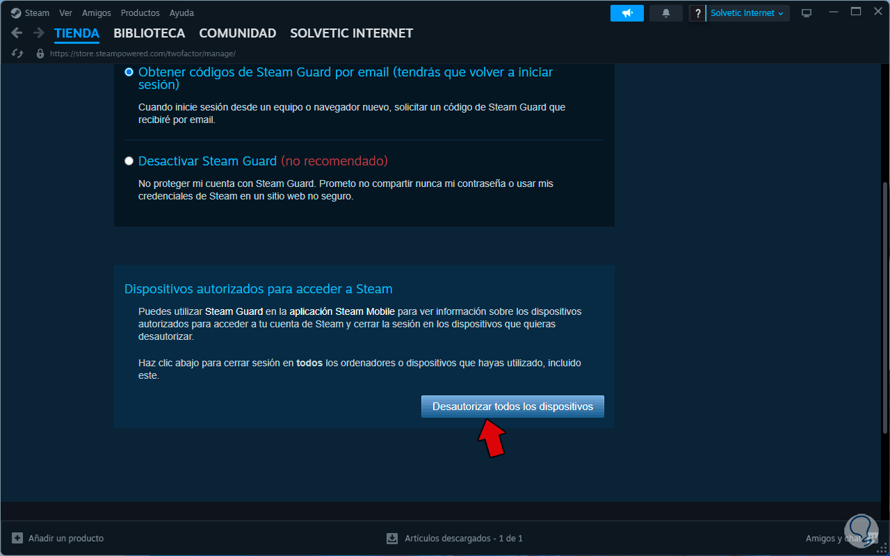 Con este paso buscamos cerrar la sesión en todos los dispositivos donde hemos iniciado nuestra sesión en Steam, la razón, es que alguno de estos equipos (PC o móvil) puede crear una interferencia con Steam Cloud.