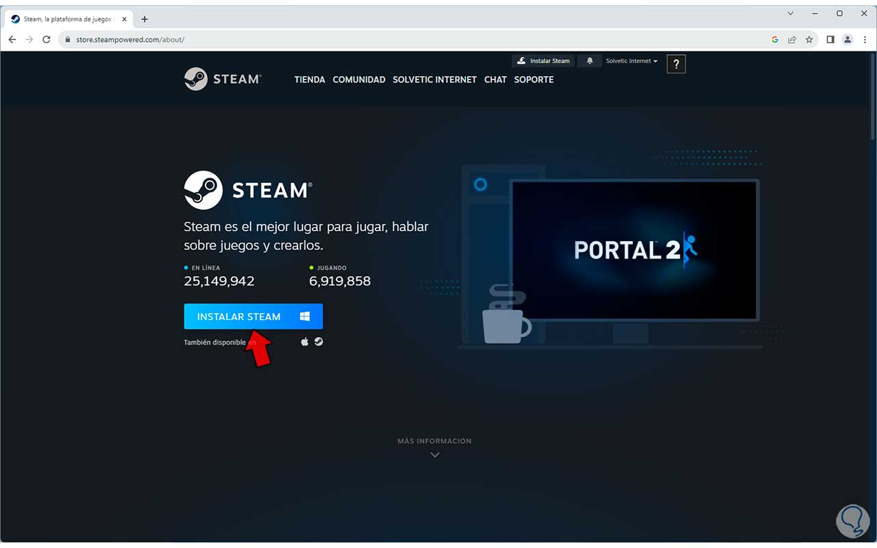 Cuando se haya desinstalado Steam, vamos a la página oficial: