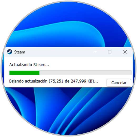 Al dar clic en “Terminar” se dará paso a la actualización de Steam: