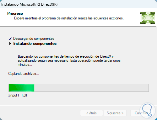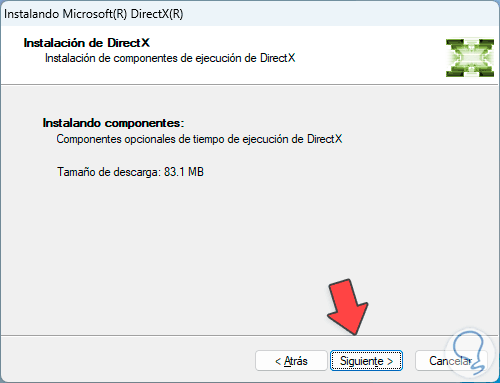 Damos clic en “Siguiente” para iniciar la descarga de los componentes: