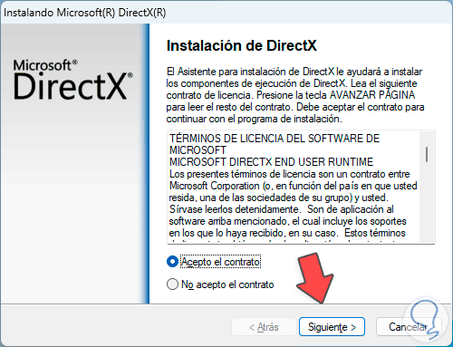 Se abrirá el asistente. Aceptamos la licencia y damos clic en “Siguiente”: