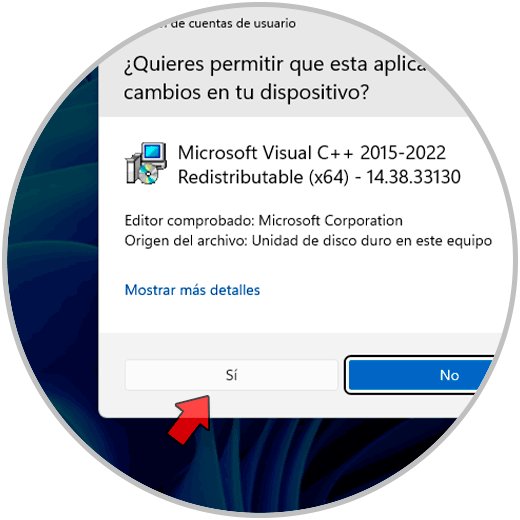 Al ejecutar el archivo debemos confirmar los permisos de UAC: