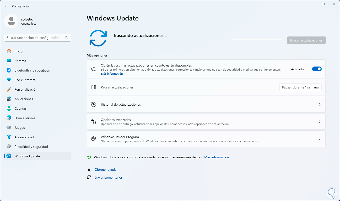 Después de esto, vamos a “Windows Update”. Damos clic en “Buscar actualizaciones”:
