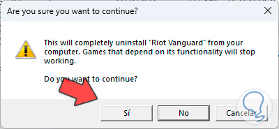 Una vez seleccionado damos clic en “Desinstalar” y debemos dar clic en “Sí” para confirmar esta operación: