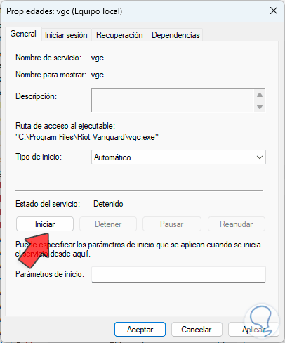 Después de esto damos clic en “Iniciar” para que el servicio se active y finalizamos dando clic en “Aplicar” y “Aceptar”.