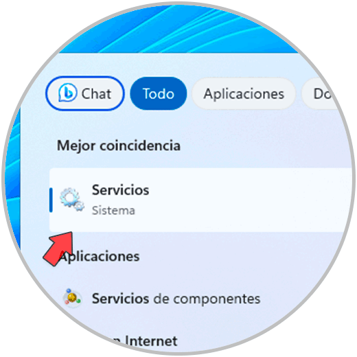 Cuando se haya realizado esto, en el cuadro de búsqueda ingresamos “servicios”: