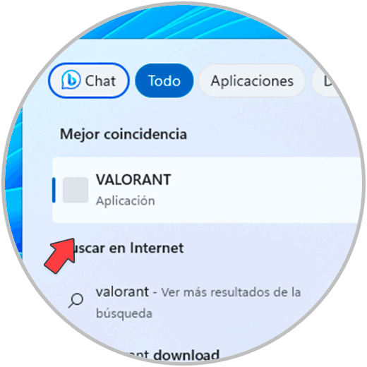 Ahora abrimos Valorant desde el cuadro de búsqueda: