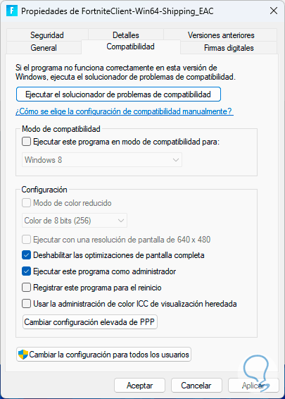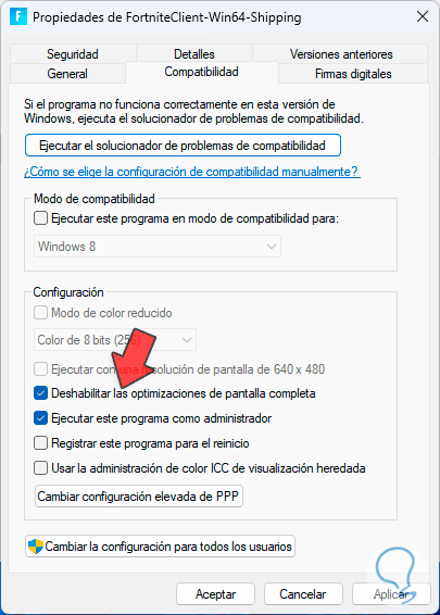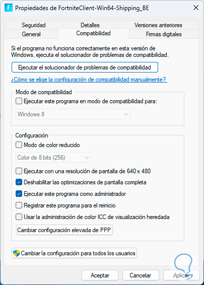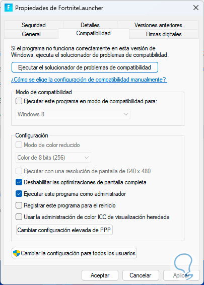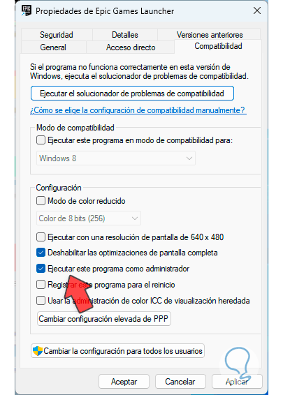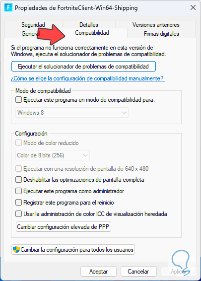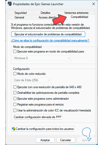 En la ventana emergente iremos a la pestaña “Compatibilidad”: