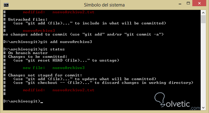 Lo que queremos lograr con esto es poner a prueba la forma de utilizar nuestro comando git add, veamos como luce esto en nuestra consola de comandos: