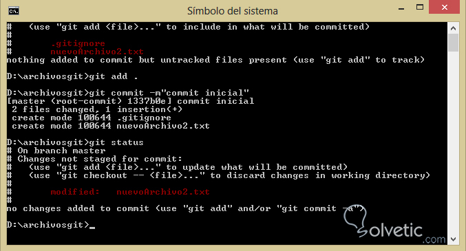 Como podemos notar ya nuestro repositorio toma en cuenta el archivo que hemos añadido con git add, esta es la manera en la que de forma básica podemos trabajar los cambios de nuestros archivos.