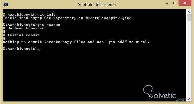2- Una vez creada la carpeta vamos a ingresar dentro de ella desde nuestra consola y ahí vamos a ejecutar el comando git init y luego hacemos git status para ver el estado de nuestro repositorio, veamos como luce la aplicación de los comandos anteriores: