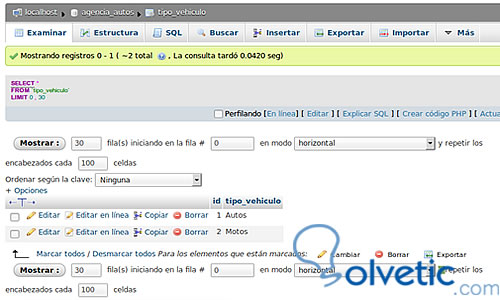 - g ) Insertamos algunos datos en la tabla tipo_vehiculo