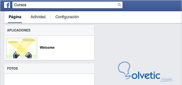 Luego si tenemos varias paginas en Facebook, seleccionamos en que pagina queremos que se instale la aplicación para crear pestañas. Podemos instalar la misma aplicación en distintas paginas de Facebook si somos administradores de de varias fan page. Podemos ver en el menú aplicaciones como se ha instalado una nueva aplicación con un nombre Welcome de momento para luego ser configurada.
