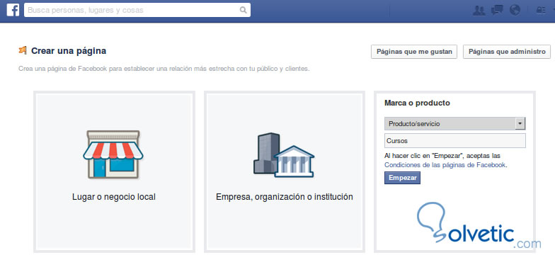 Una vez configurada la marca o producto damos click en Empezar para continuar configurando la página de Facebook.