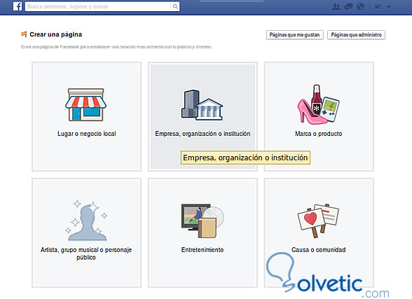 Para crear una pagina de Facebook accedemos a nuestra cuenta y luego vamos al siguiente enlace: