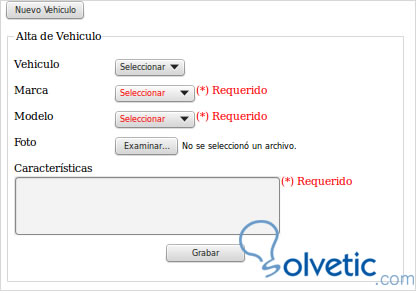 Tenemos entonces el listado generado de vehículos, vamos a añadir un formulario para dar de alta los vehículos.