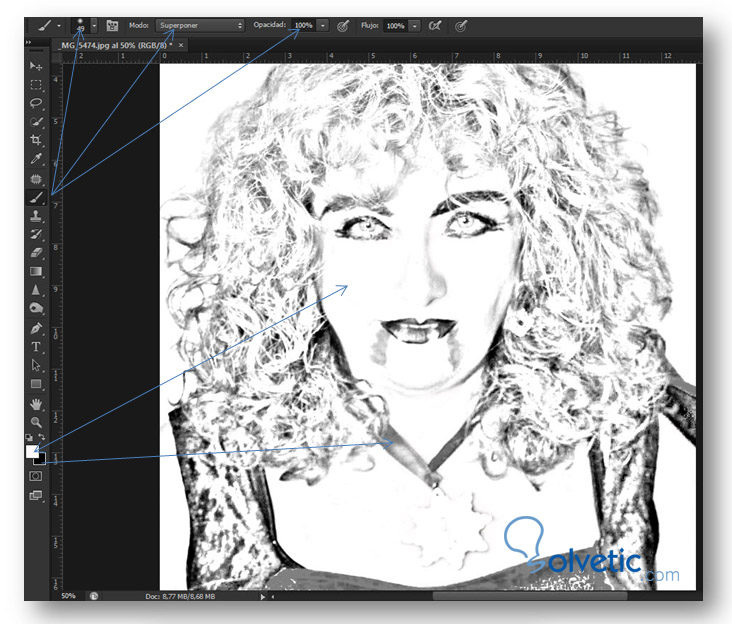 7º Por último seleccionamos el pincel y jugamos con los colores blanco y negro de la paleta de colores