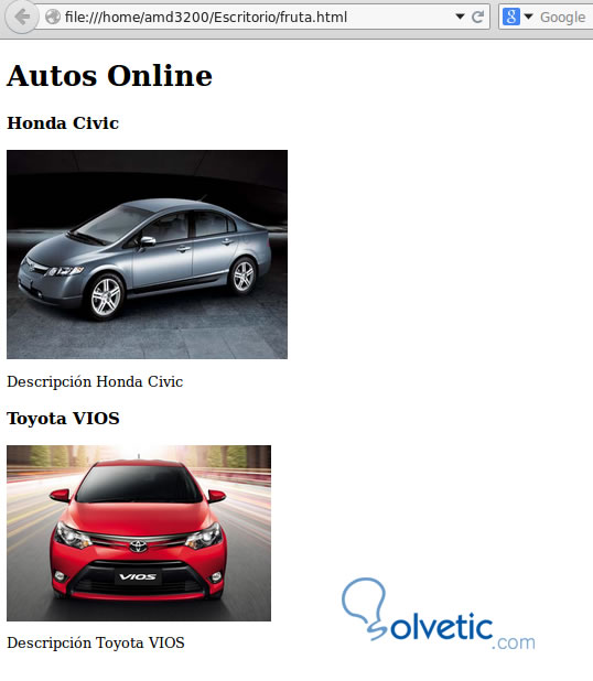 Vemos un ejemplo sencillo de una página web y su código en HTML5: