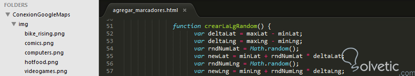 5- Antes de construir las dos funciones que fijaran los marcadores es importante realizar algo de trabajo sobre las coordenadas para que nos proporcionen valores aleatorios en ese rango y las mismas puedan ser interpretadas por el API de Javascript de Google Maps, esto lo realizaremos con algunas operaciones aritméticas sobre las variables globales de las coordenadas, veamos la función correspondiente: