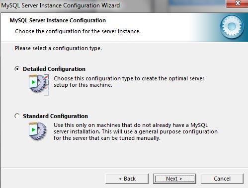 A continuación comienza el proceso de configuración automática de Wizard de Mysql presione el botón Next y para una optima instalación la opción Detail configuration tal como se indica en los siguientes paneles: