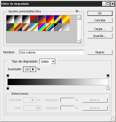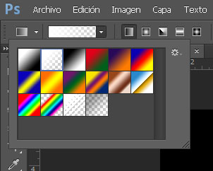 Posteriormente se vuelve a tomar la herramienta degradado y se observa que en su propiedades quede en degradado lineal de blanco a transparente: