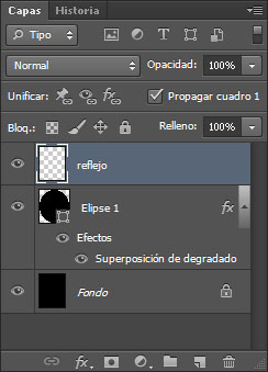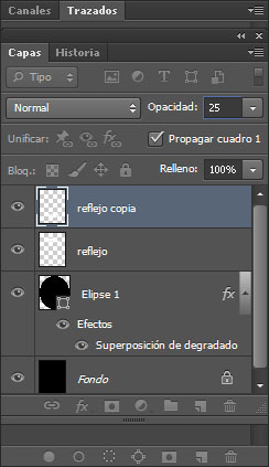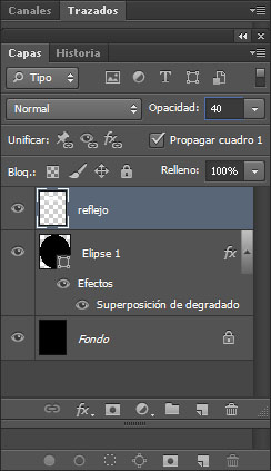 Ahora en la opacidad de la capa reflejo se le asigna un valor del 40 %: