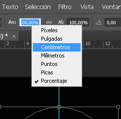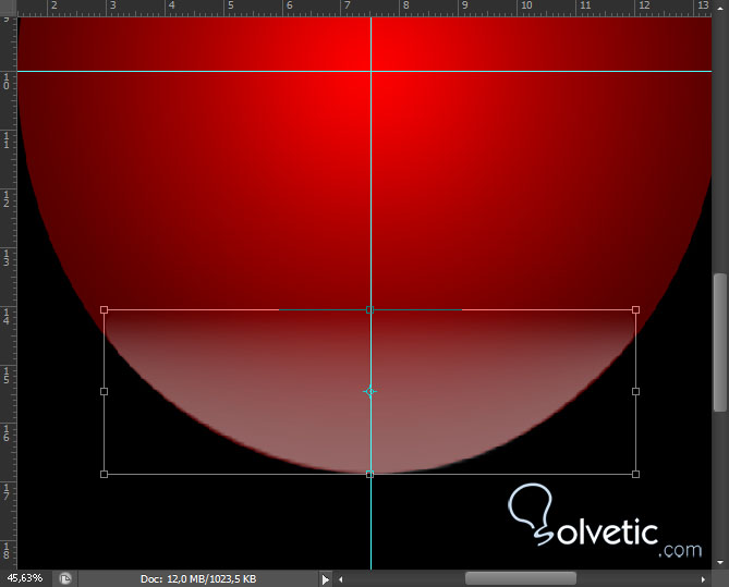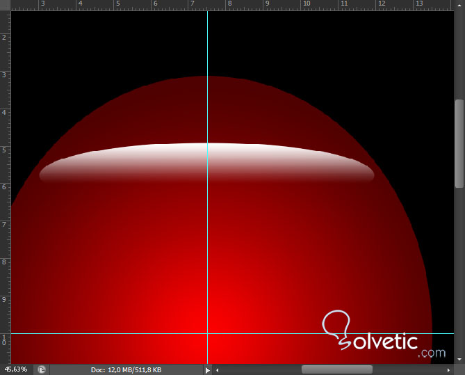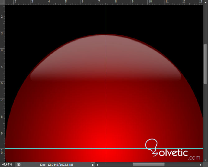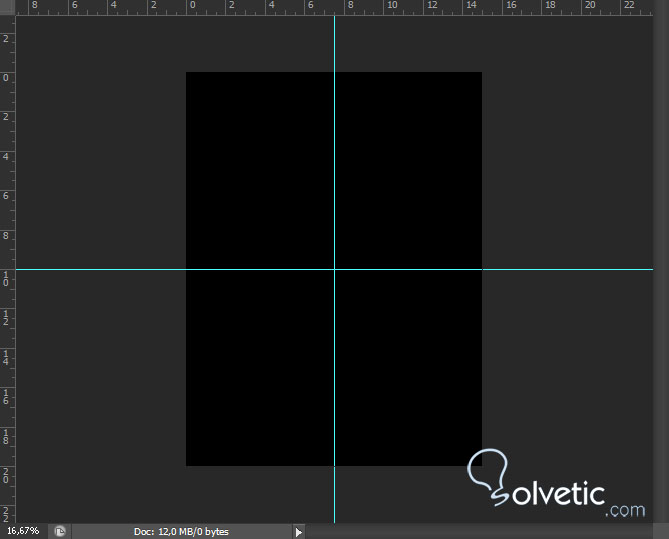 Se hace clic sobre la regla y se desliza el ratón para crear a línea guía de arriba hacia abajo y luego de izquierda a derecha. Cuando parece que se detiene el desplazamiento del ratón, significa que se llegó al centro del Liendo: