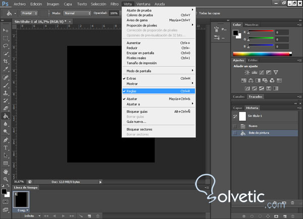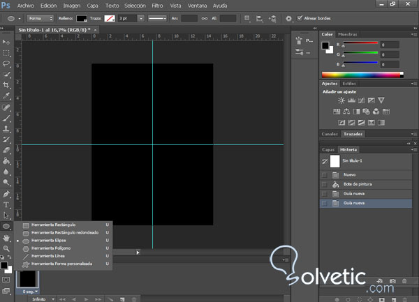 A continuación se creará líneas guías (se deben tener activadas las reglas):