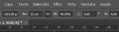 Para estar seguro que se le han dado 12 centímetros de ancho se hará clic en Control + T (se selecciona la elipse) y luego se va a la parte superior en donde se puede ver el valor asignado al ancho de la elipse, en caso de ser necesario se modifica a ese valor. Luego se activa la cadenita para que quede bloqueado y se presiona la tecla enter para validar.