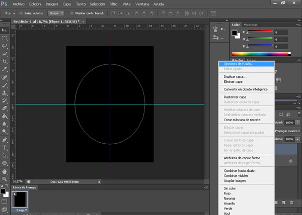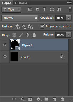Cuando se diseñó la elipse se creó una nueva capa, a la cual se le modificarán las opciones de fusión:
