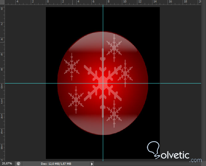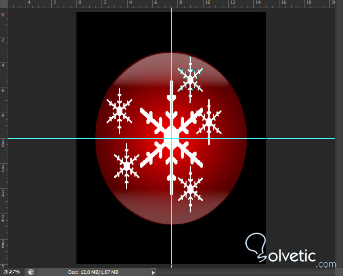 Posteriormente se vuelve a repetir el paso 16 hasta crear varios efectos de copo de nieve sobre la esfera, quedando algo similar a la siguiente imagen: