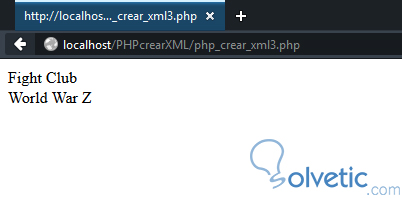 ?>Aunque el código pueda verse un poco corto, lo que hacemos es crear un objeto del archivo cargado y podemos recorrer con un foreach cada uno de los nodos del mismo y así acceder al contenido de su etiqueta de forma sencilla. Con lo cual obtendríamos lo siguiente en el navegador:
