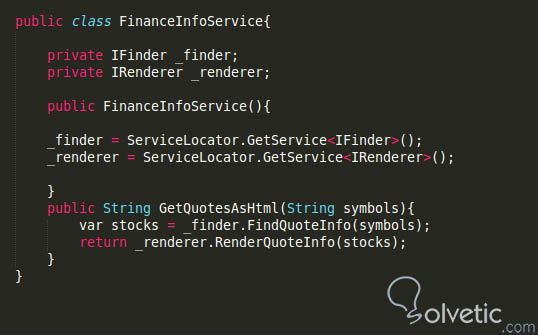 Podemos notar como primero definimos los atributos necesarios para hacer la búsqueda de los servicios, luego en el constructor de nuestra clase definimos la instancia del localizador que se va a utilizar.