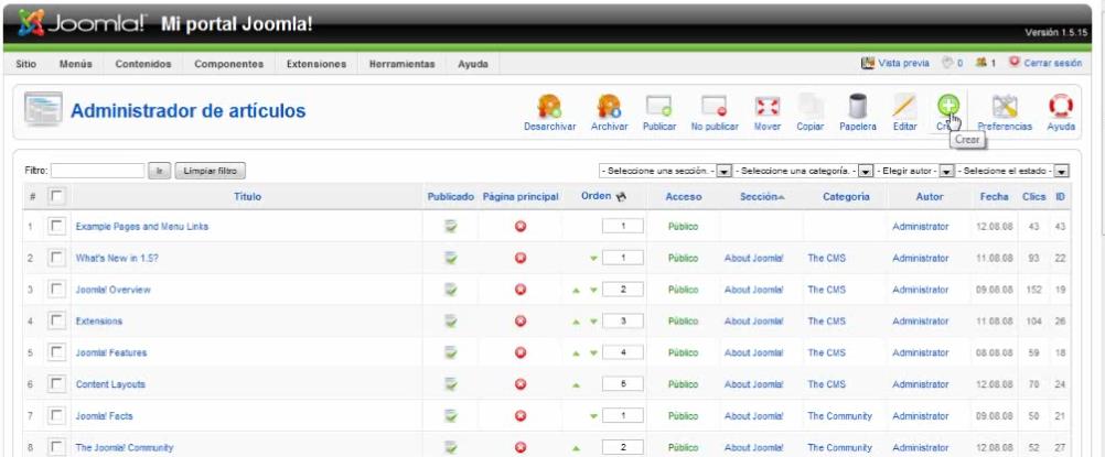 Ahora llega el turno de escribir el artículo. Se puede ver que Joomla presenta de manera predeterminada un editor de texto en donde se le podrá dar formato al mismo