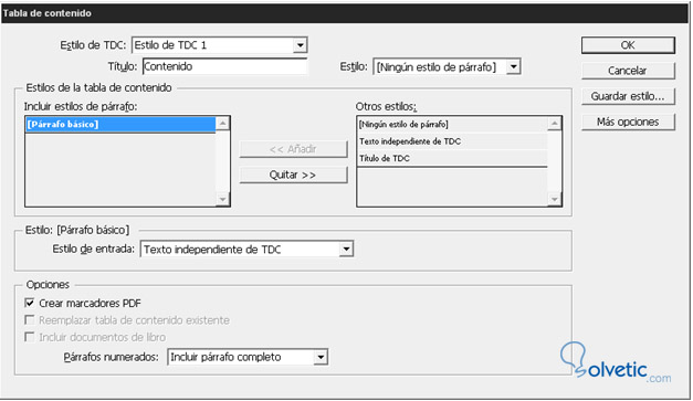 Como primera medida se le debe asignar un estilo TDC y un titulo. Luego se determina el estilo que se desea aplicar por ejemplo: Estilo de párrafo básico y se añade haciendo clic en el botón de añadir.