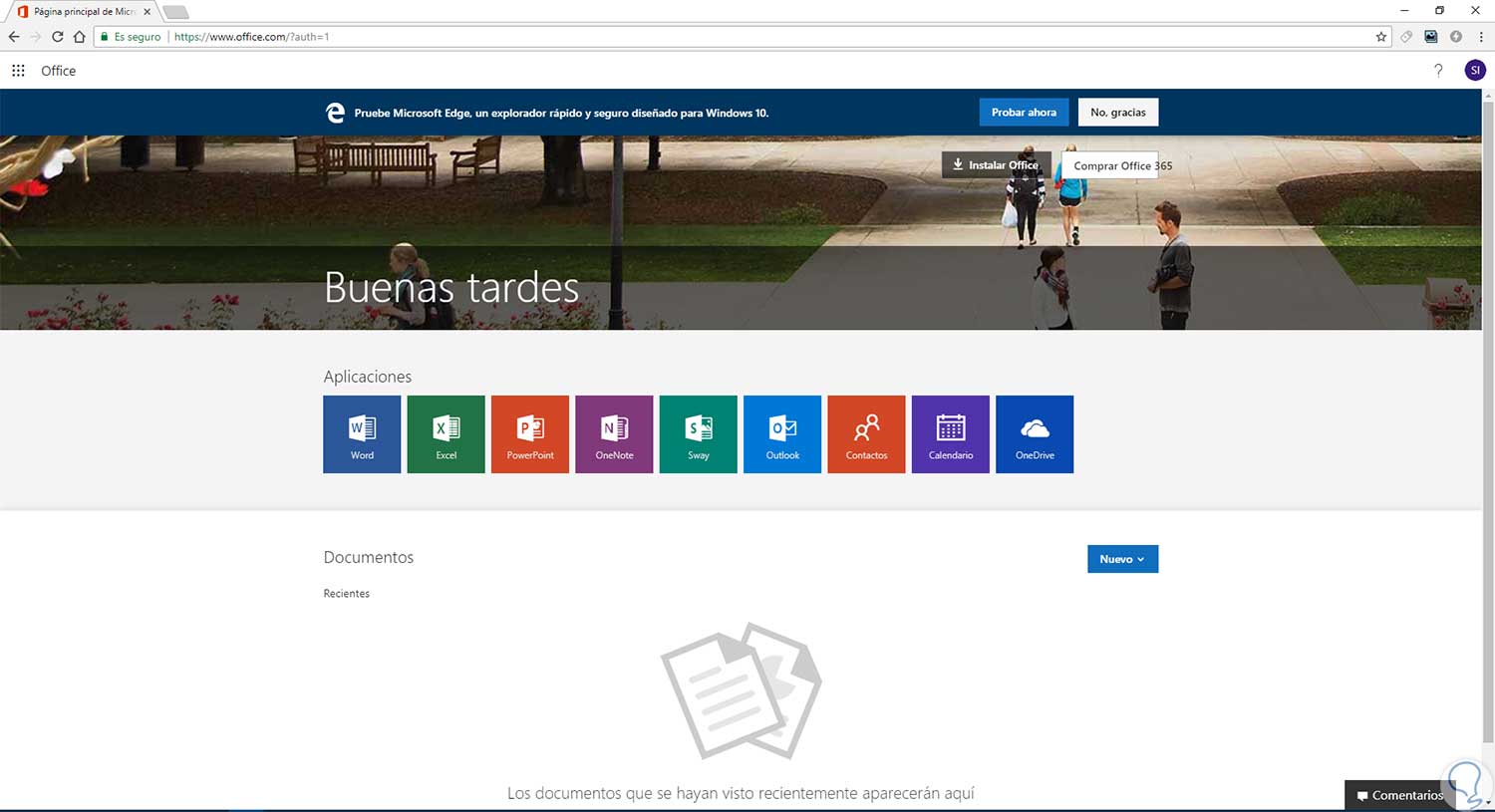 Si hemos validado correctamente nuestra cuenta veremos que se nos redirecciona a la página principal de Microsoft donde tenemos acceso a nuestro perfil.