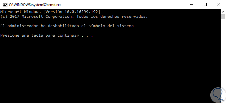 Al intentar abrir la consola CMD aparecerá este mensaje y al pulsar cualquier botón lo cierra.