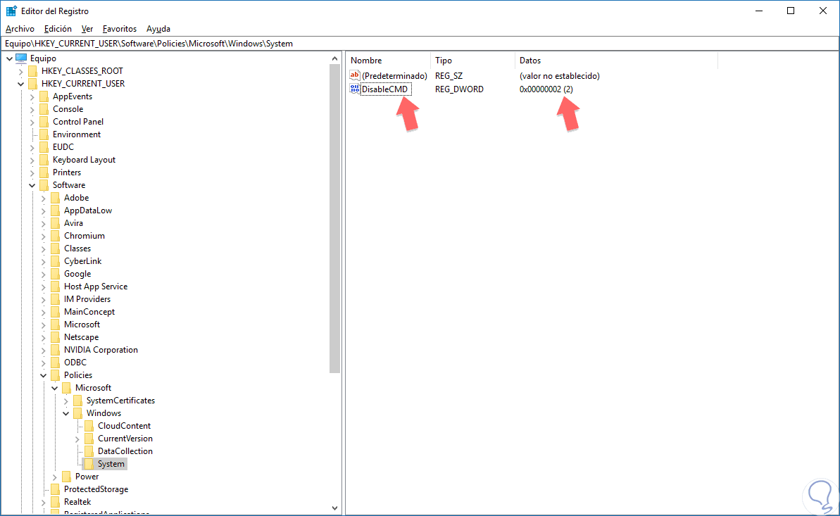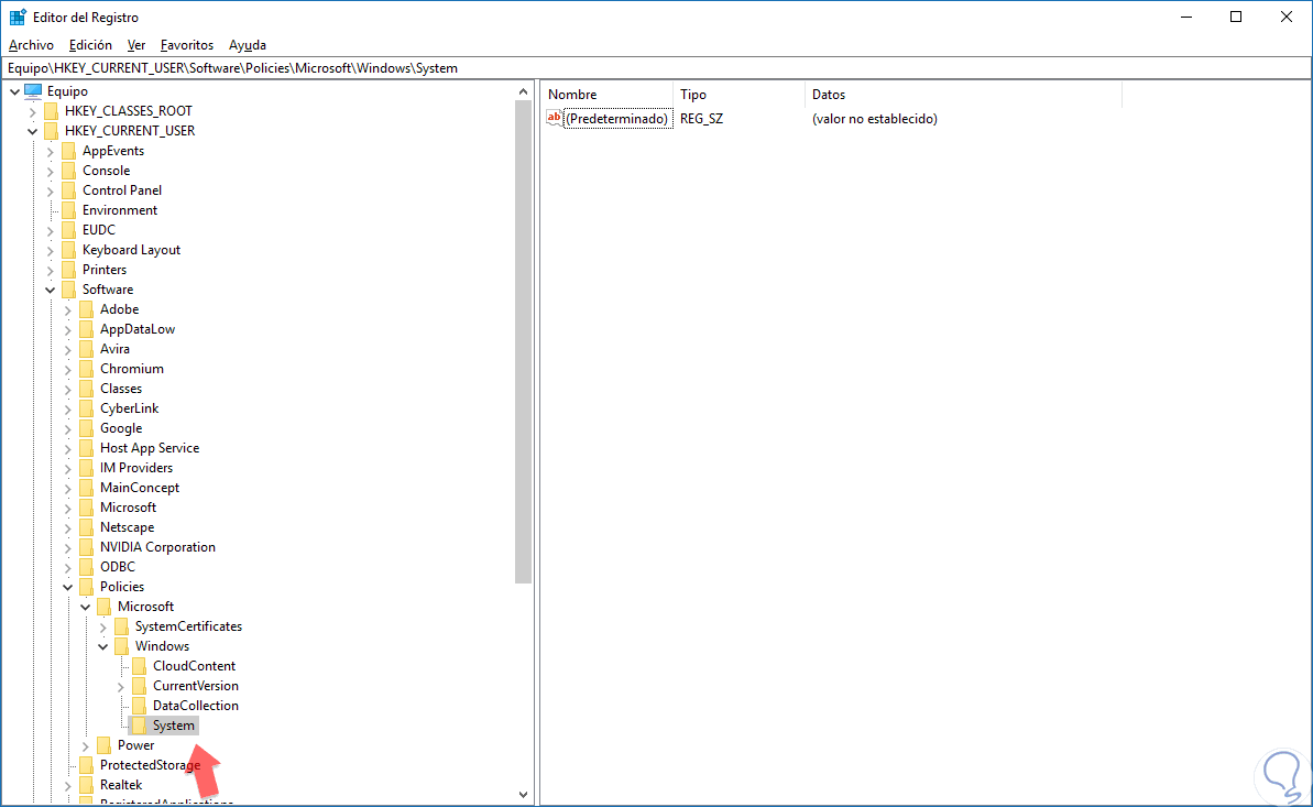 Equipo/HKEY_CURRENT_USER/Software/Policies/Microsoft/Windows/System